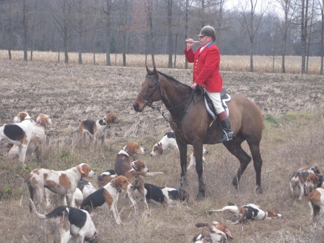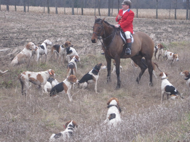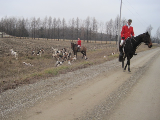 This is the horn he blows to get all the hounds to return to them. They got destracted by the shelties. Home