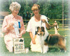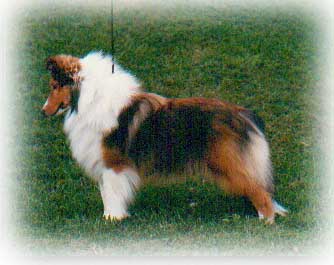 By Ch.Silverdrifts Thriller & Trademark's Wee Luv Angel is pictured at 7 months, finished her championship at 8 months! She was out of the first litter born here at Golden Hylite Shelties & our very first Champion !
